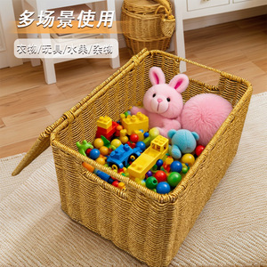 收纳筐手工仿藤编织客厅家用整理衣服大容量篮子零食玩具框书籍箱