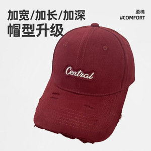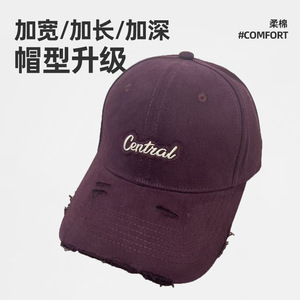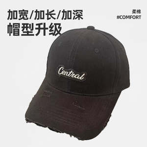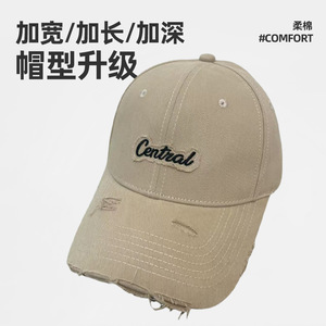 大头围硬顶棒球帽女新款破洞街头潮牌百搭遮阳显脸小宽檐鸭舌帽男