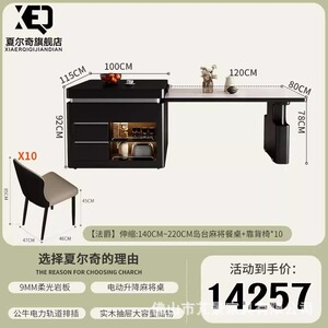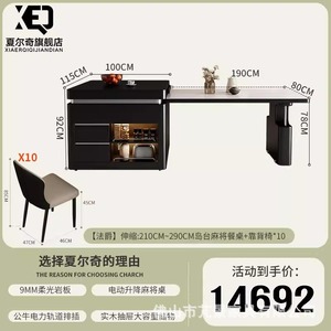 【法爵】【伸缩范围210CM~290CM】岛台麻将餐桌+靠背椅*10