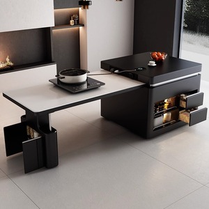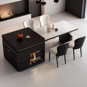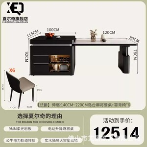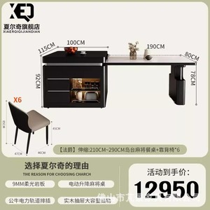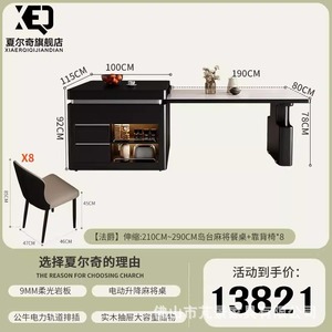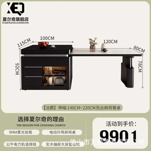 麻将桌机岛台岩板餐桌一体两用家用可伸缩二合一多功能电动升降