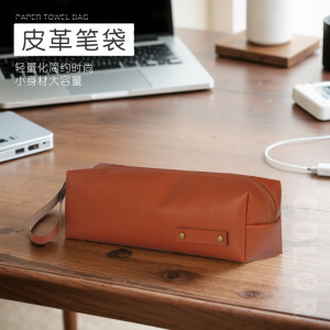皮革手拎笔袋收纳袋大容量文具收纳笔袋家居收纳小包PU笔袋定制