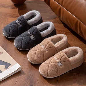 保暖棉拖鞋女款冬季家居室内包跟防滑厚底毛毛绒踩屎感棉鞋男冬天