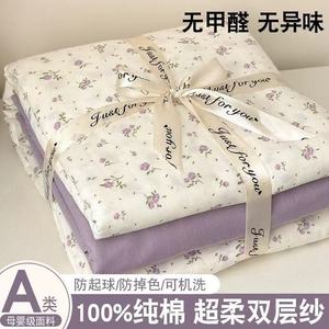 A类母婴级全棉双层纱印花四件套纯棉ins新款三件套小清新南通家纺