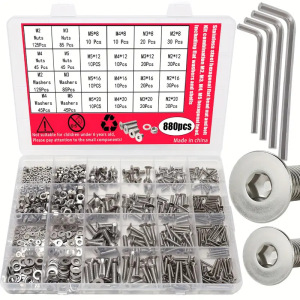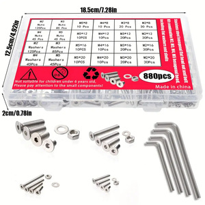 跨境880pcs304不锈钢螺丝螺母套装组合沉头/平头内六角螺丝钉套装