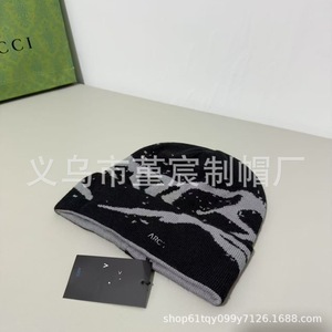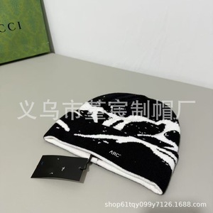 秋冬新款保暖小鸟提花精疏羊毛针织帽男女网红时尚百搭冷帽毛线帽