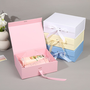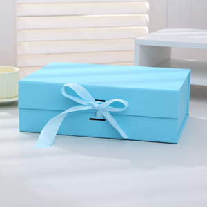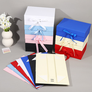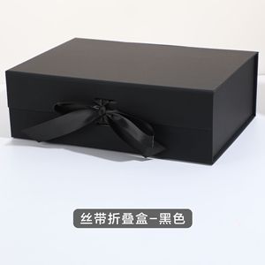 触感纸书型折叠盒空盒大号磁铁翻盖丝带折叠盒一片式服装礼物盒