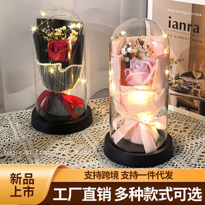 永生花玫瑰罩加灯生日礼物仿真花女生送闺蜜520七夕情人节永生花