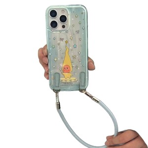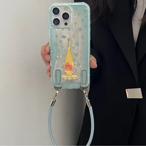 银蓝彩星星人斜跨绳适用苹果16promax手机壳15pro新款14/13/12/11