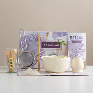 跨境专供日式陶瓷抹茶碗茶具套装浮雕樱花碗带嘴7件套高颜值彩盒