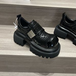 英伦风潮酷方头小皮鞋女2025秋季新款绝绝子厚底增高金属扣乐福鞋