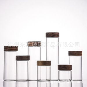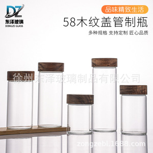 相思木盖58mm玻璃罐透明高硼硅密封茶叶罐杂物收纳罐文玩展示瓶