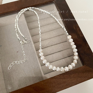 碎银拼接珍珠项链女choker颈链夏日配裙子轻奢锁骨链配饰2025新款