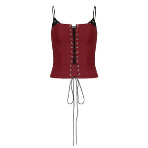 欧美辣妹撞色假两件梭织绑带收腰显瘦吊带小背心气质胸型纯欲上衣