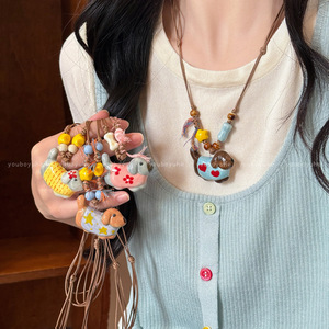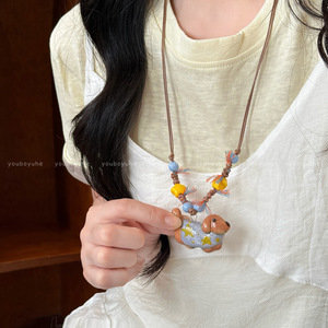 韩系卡通童趣风小狗吊坠项链高级感百搭甜酷风精致百搭小众女项链