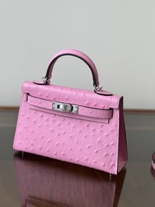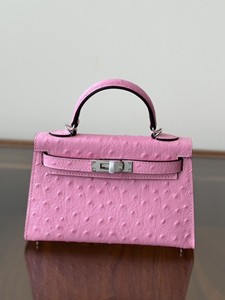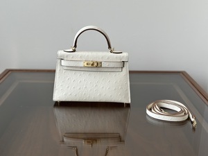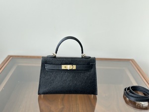h家头层牛皮鸵鸟纹二代凯莉包19真皮百搭女包 时尚锁扣单肩斜挎包
