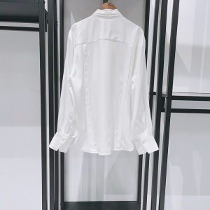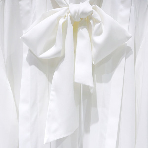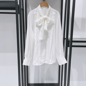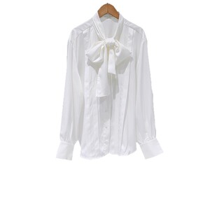 法式小众 2025早秋轻奢垂顺丝感白色飘带围巾领包扣女士衬衫25750