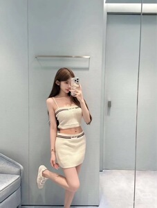 MIU系夏季新款针织衫短款减龄时尚m套装开衫背心半裙三件套