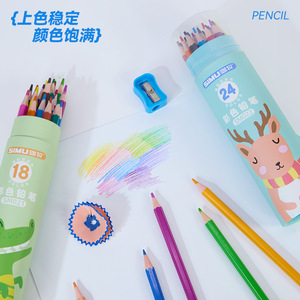 现货批发彩铅桶装小学生儿童绘图绘画专用24色36色彩色铅笔文具