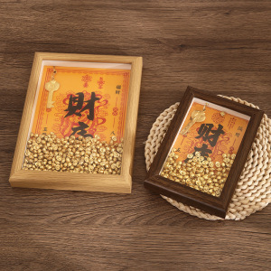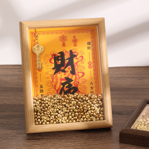 财库中空相框摆台6寸8寸黄财神金钥匙办公室大元宝招财祈福小摆件