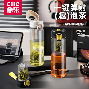 希乐磁弹泡茶杯茶水分离杯子女生2025新款磁吸大容量男士运动水杯