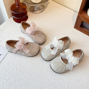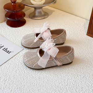 女童公主鞋春季水晶鞋儿童鞋子2025新款配礼服女孩小皮鞋宝宝软底