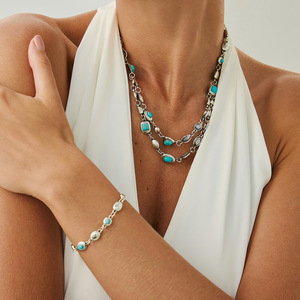 欧美跨境轻奢ins风彩色亚克力钻项链女 时尚仿松石金属锁骨链项饰