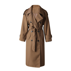 英伦风气质时尚双排扣系带大衣女秋季新款宽松大码廓形风衣外套