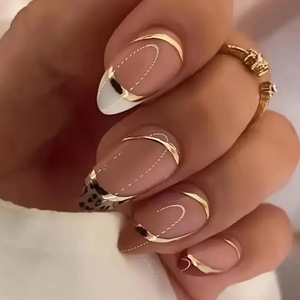 欧美热销款美甲24片杏仁型合集温柔气质散粉线条长款穿戴甲片批发