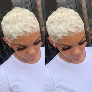6inch 60# color human hair wig pixie cut真人发发套白色发套
