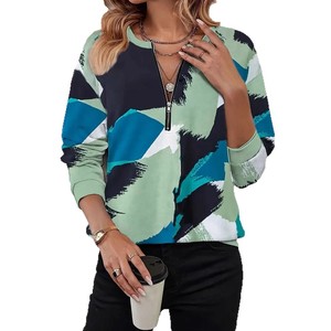 2025 亚马逊速卖通wish跨境秋冬拼色宽松拉链长袖V领卫衣女款现货