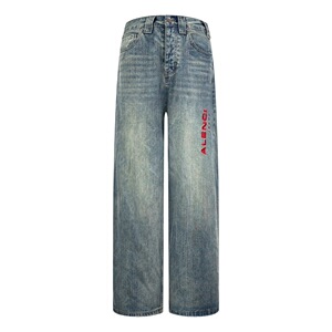 B家高版本刺绣字母牛仔长裤宽松OS版型时尚牛仔裤两色现货天花板