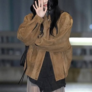 美式复古机车帅气夹克宽松潮牌高级感短款绒面真皮羊皮衣外套上衣
