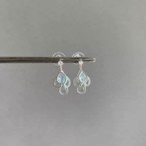 海蓝色水滴流苏耳环轻奢气质时尚高级感简约百搭耳夹无耳洞耳饰女