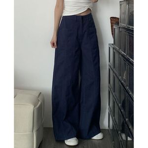 小个子复古水洗藏蓝色工装裤女阔腿牛仔裤女高腰宽松显瘦直筒长裤