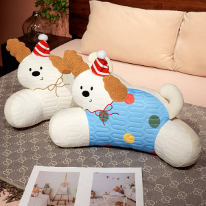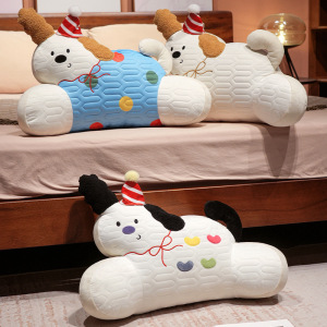 翘耳快乐小狗乳胶冰丝腰靠可拆洗可爱卡通办公室护腰沙发床上靠枕