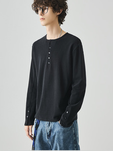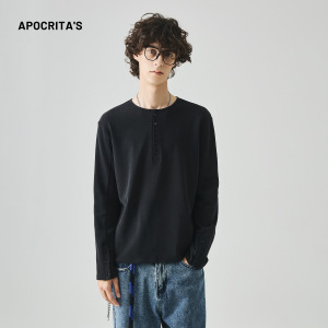 APO男装 |跨境男士长袖T恤秋季轻奢纯色修身亨利领内搭上衣打底衫