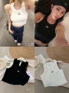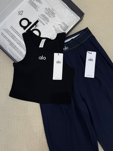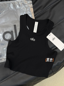 现货ALO螺纹背心短款字母瑜伽腰工装运动跑步健身日常内搭外穿批