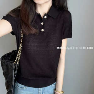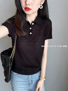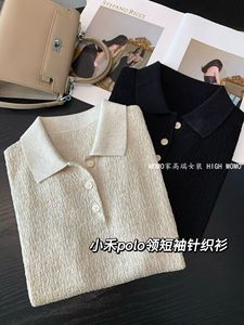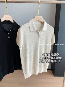 禾+系列!柜面1500+棉羊毛混纺polo领短袖针织衫简约套头上衣女
