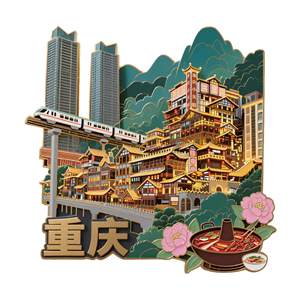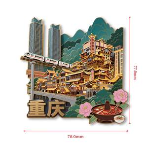重庆文创冰箱贴新款七彩浮雕重庆冰箱贴金属锌合金重庆冰箱贴立体