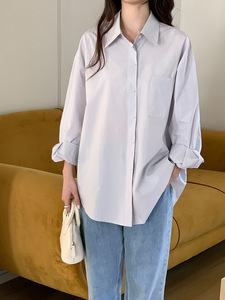 韩系慵懒宽松显瘦长袖衬衫女秋季2025新款休闲百搭开衫衬衣上衣