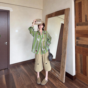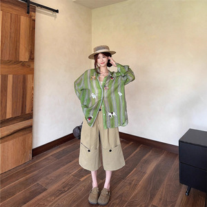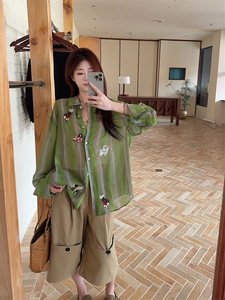 小狗刺绣轻薄防晒衬衫女2025夏季新款设计感小众复古衬衣宽松上衣