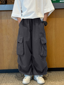 儿童工装裤男童阔腿裤2024夏季薄款大童男孩街舞嘻哈伞兵长裤开学