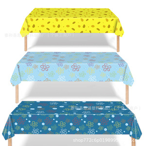 海绵生日派对用品蓝色海洋花桌布一次性适用于生日派对装饰用品