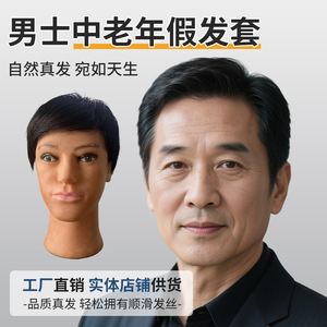 全手织假发男短发中老年送爸爸男士帅气轻薄透气光头遮白发全头套
