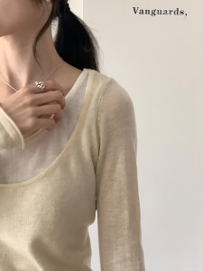 撞色假两件长袖针织衫女秋季广州十三行新款韩系慵懒休闲t恤上衣