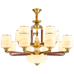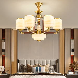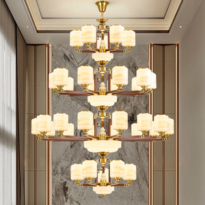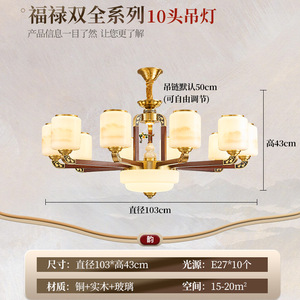 新中式吊灯全铜实木客厅灯复古中国风禅意卧室餐厅别墅挑空大吊灯
