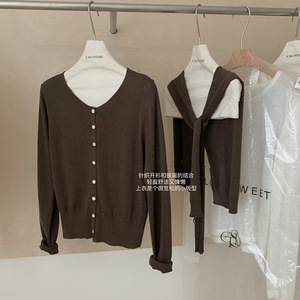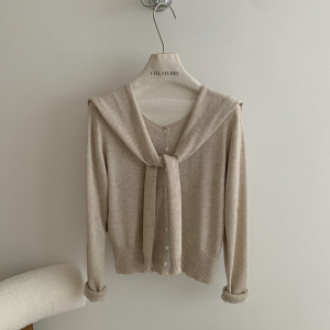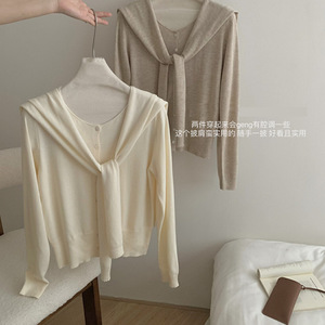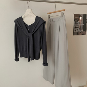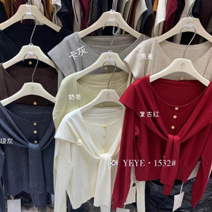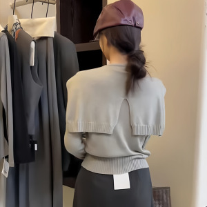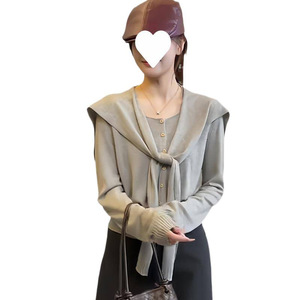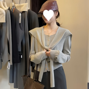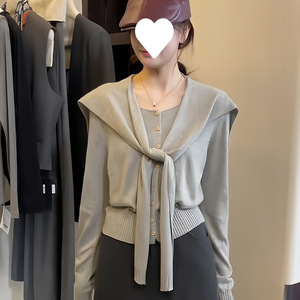 早秋新款韩系针织开衫女上衣高级宽松别致圆领长袖搭配披肩两件套