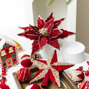酒红绒布圣诞花 26CM掉粉介意慎拍