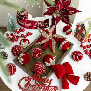 热销圣诞树装饰品酒红色植绒球纯配饰礼包套装吊球diy圣诞树挂件