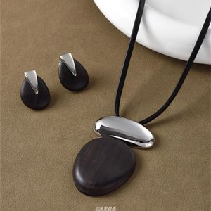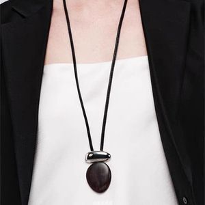 黑檀木金属拼接项链女新中式轻奢小众设计高级感长款皮绳毛衣链